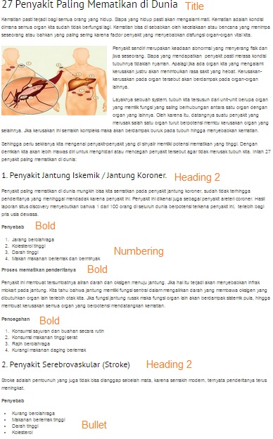 Heading, bullet & numbering digunakan agar artikel terstruktur dan mudah di baca / di pahami / dan konten rapi untuk di baca.
