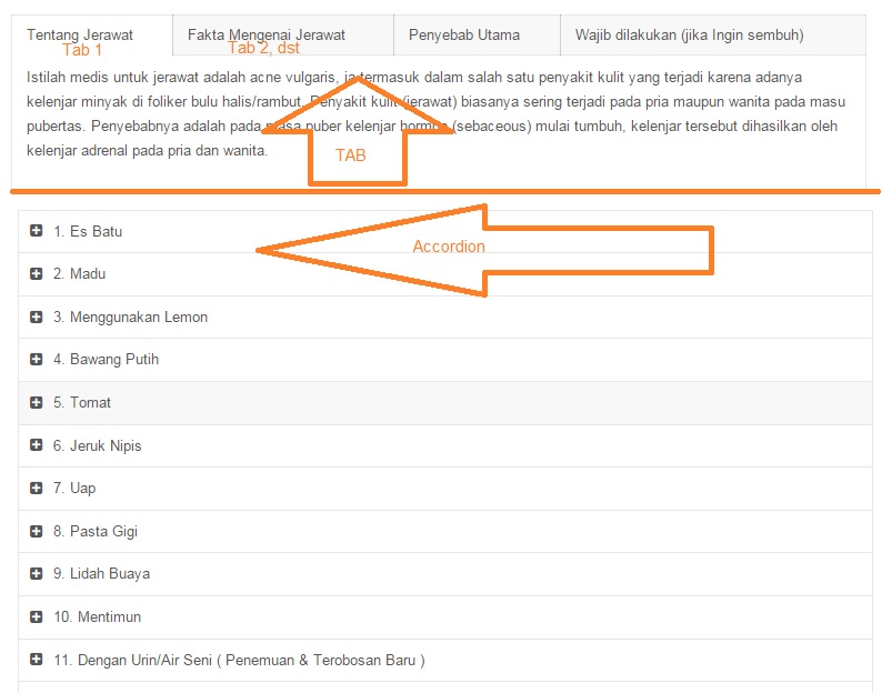 Accordion dan tabs di gunakan untuk menguraikan artikel yang panjang agar menjadi simple dan rapi.